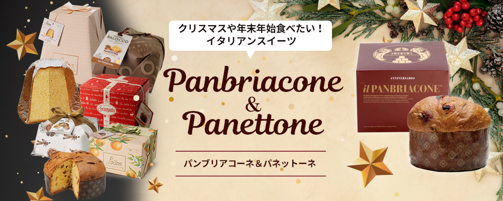 イタリアではクリスマスや大晦日を家族や友人たちと一緒にお祝いをするのが一般的。そのときに必ず食べるのがパネットーネ。小麦粉と卵の生地にレーズンやドライフルーツを混ぜ合わせてふわっふわに焼き上げた、シンプルで風味豊かなパネットーネは子供からおじいちゃん、おばあちゃんまでみんなで一緒に楽しめる、イタリアの冬の風物詩♪ そのパネットーネに甘いパッシートワインを浸み込ませたのが「パンブリアコーネ」。口の中でふわっふわの生地の中からしっとりとした甘いパッシートワインがとけ出してくる、贅沢な大人のスイーツです。 今年のクリスマスはイタリアのケーキ「パンブリアコーネ」「パネットーネ」でお祝いしましょう。 |