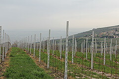 仕立てはペルゴラヴェロネーゼと言ってこの地方の伝統的な仕立て方法を主体にしています。1年を通して日光が当たるので、ここではグヨ仕立てよりも向いています。畑は標高120~180mのところから、600~700mのところまであります。新しい畑は高い標高の場所にあって、徐々に広げていっているところです。