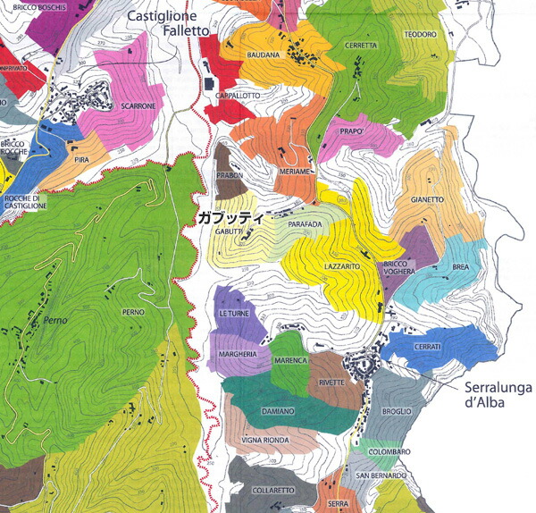 セッラルンガのクリュ「ガブッティ」の南東向きの最上の区画 |