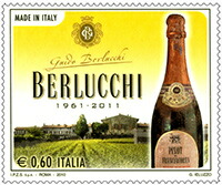 2011年はフランチャコルタ誕生から50年。協会ではその記念の年に生みの親であるベルルッキとともにお祝いしたいと考えていたので私たちに熱烈に復帰を呼びかけました。また、2011年はフランコが80歳を迎えます。それもあって、2011年までにすべての商品をフランチャコルタに戻そうという計画を立てました。とはいえ、フランチャコルタは長い熟成が必要なので時間がかかる。結局、最後の「キュヴェインペリアーレ」が2011年にフランチャコルタになって、私たちのプロジェクトは完了しました。 2011年、協会と一緒に50周年を盛大に祝いました。そしてフランチャコルタはイタリアの文化であるということで郵政省が記念切手を発行しました。そこにデザインされたのが1961年に初めて造った「ピノディフランチャコルタ」のボトルです。 |