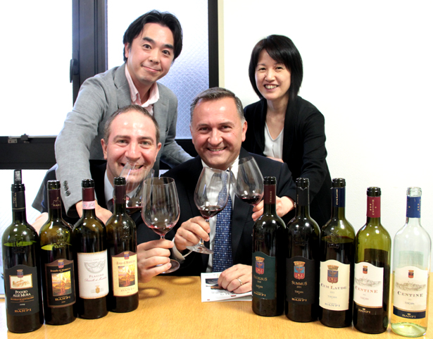 | モンタルチーノで最大規模を誇るワイナリー、バンフィ。モンタルチーノ全土24000ヘクタールのうち、バンフィが所有する面積はそのうちの3000ヘクタールも占めています。前回(2013年3月)の突撃からさらにパワーアップしているバンフィの現状についてマーケティング部長のロドルフォ氏と、北アジアエリアマネージャーのパオロ氏にお聞きしました。 |
