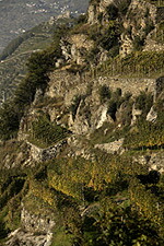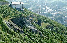 ヴァルテッリーナは山に囲まれた斜面地の段々畑