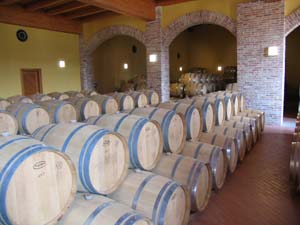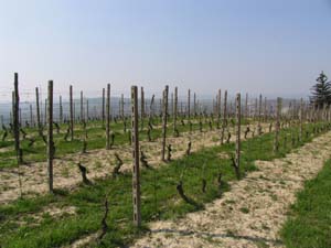 バローロボーイズと呼ばれる、新樽を使った、早くから飲めるバローロの新進気 鋭の造り手たちの間で採用されている醸造を目の当たりにして、少し興奮気味に なりながらカンティーナの外に向かいました。 |