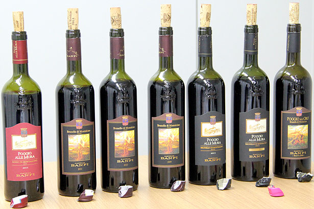 今日は、スタンダードのブルネッロの垂直試飲と、ポッジョアッレムーラの3つのワイン、そしてポッジョアローロを飲んでいただきます。 |