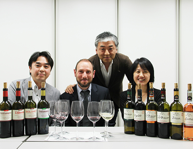 ピサ大学を首席で卒業、26歳で3大ボルゲリ「グラッタマッコ」の責任者となり、10年後には『ガンベロロッソ』2017で彼が造るワインが3本同時に最高賞トレビッキエリを獲得。まさに「時代の寵児」となったルカマッローネ氏。彼の口からは何度も「アルティジャナーレ」(主に芸術や音楽の「作品」に当たる言葉)という言葉が出てきました。時に、造り方のセオリーを超え、「ありのままのブドウの魅力を引き出す」事に精力を傾注する姿はまるでアーティストのようなオーラがありました。楽譜は常に同じだけれども演奏の結果は常に異なる。こだわりと感性を持ってテロワールに結びついた最上のブドウの味わいを表現することができる「サンジョヴェーゼのファンタジスタ(創造性と機知に富む人)」の情熱的な話にただただ引き込まれていくばかりでした。