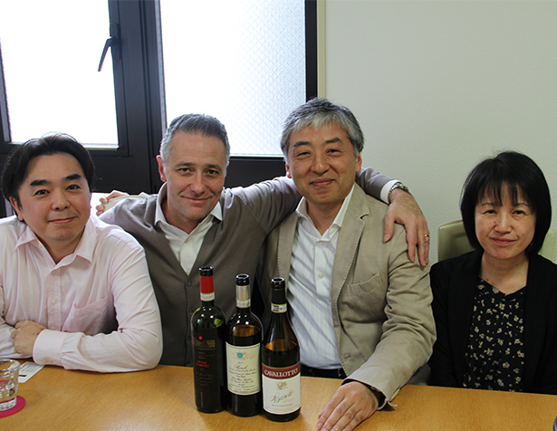 21年間前、ピエモンテのカナーレにあるこの会社を妻と立ち上げました。住まいもカナーレにあり、妻サラはロエロのマッテオコレッジアで働いています。私たちの会社は家族経営の少量生産のワイナリーのみ扱っています。一般的なエージェントの感覚ではなく、私もカンティーナの一人としての意識で話をするので、信頼関係も厚いです。ですので、ワイナリーは何処でもよいという訳ではなく、「真実の造り手」を選んでいます。つきあっているインポーターもキチンとワインをわかっているインポーターとしか付き合いません。カンティーナの情熱を表現する事をモットーにしています。