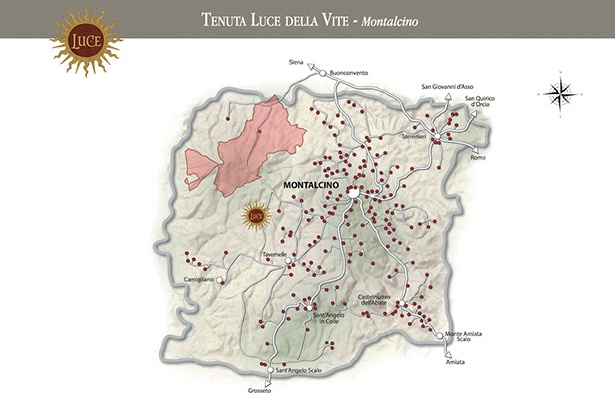 地図上でグレーになって複数ある畑が「カステルジョコンド」で、ルーチェの畑は主に2ヵ所です。「カステルジョコンド」と非常に近くに位置する畑ですが、出来上がるワインのスタイルは全く異なります。