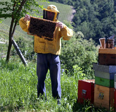 そして、ブドウ畑にミツバチの巣箱を置くこともしています。害虫を駆除する効果や、受粉を促したり、また、できるハチミツによってどれぐらいの花が存在しているのかがわかるようになります。