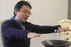 | 「ラ ビアンカーラ」のワインを太田氏と試飲をしながら、サッサイアの醸造のお話、熟成した時の「垢が取れる」という表現が新鮮でした。