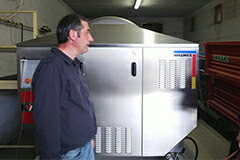 最新のバルーンプレス機を導入では醸造について話しましょう。1999年に収穫したブドウを空気圧で優しく絞る最新のバルーンプレス機を導入しました。よりクリアーな果汁を得る為です。私達のような小さな生産者で導入している所は少ないでしょう。なおかつ、私達のような生産規模から言えばこのプレス機の1/3の大きさがあれば十分だと思いますが、収穫期はブドウの状態を見て1日に3回に分けて収獲する事もあります。それが10日間続く事もありますので、収穫したブドウはなるべく直ぐにプレスしたい。そういったことから1800キロの大型のバルーンプレスを2台使っています。