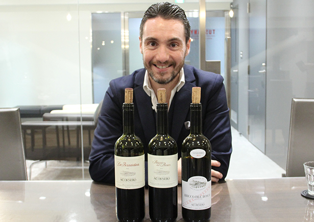| バローロ、バルバレスコよりもワイン造りの歴史が古く、ピエモンテ州のワインを語る上で欠かせないエリアがアスティ県北部アレッサンドリアに広がるDOC「モンフェッラート」です。古くは10世紀初頭、十字軍の英雄の一人、モンフェラート侯が統治、王侯貴族に愛されたモンフェッラート発祥のブドウ品種「グリニョリーノ」は現フランシスコ ローマ法王も愛飲する等現代においてもピエモンテの象徴的ワインとして位置付けられています。家族4代に渡って有機農法を貫く「アッコルネーロ」はまさにグリニョリーノの顔と言うべき存在で、樹齢70年超の古木で造る単一畑グリニョリーノ100%「ヴィーニェ ヴェッキエ」はバローロ、バルバレスコに全く引けを取らない深遠で美しい世界観がありモンフェッラートが偉大なワイン産地である事を世界中に知らしめています。輸出部長のクリスチャン マダレナ氏に既成概念を覆す品格と緻密さを持つグリニョリーノの素晴らしさについてお話を聞きました。 |