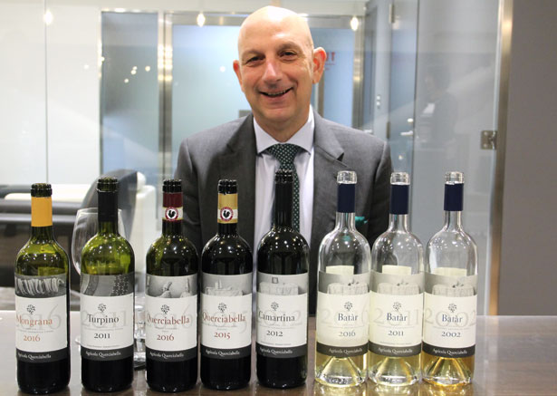 | クエルチャベッラは、エレガントなスーパートスカンを造るため、ジャコモタキスの勧めに従いキャンティクラシコの中でももっとも標高の高いグレーヴェインキャンティのルッフォリで1974年に創業したワイナリーです。カマルティーナ、バタールという赤白のスーパートスカンをリリースしてすぐに世界的評価を獲得。さらに2代目当主セバスティアーノがビオディナミとビーガンに舵を切り、クエルチャベッラのスタイルはますますエレガントで洗練されたものになりました。ワイナリー設立から発展の経緯、そしてワイン造りポリシーについて輸出部長ジョルジョフラジャコモ氏にお話しを聞きました。 |
