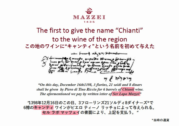 1398年に初めてキャンティの名を与えたセルラポを先祖に持ち、数々の歴史を残してきた由緒あるマッツェイ家