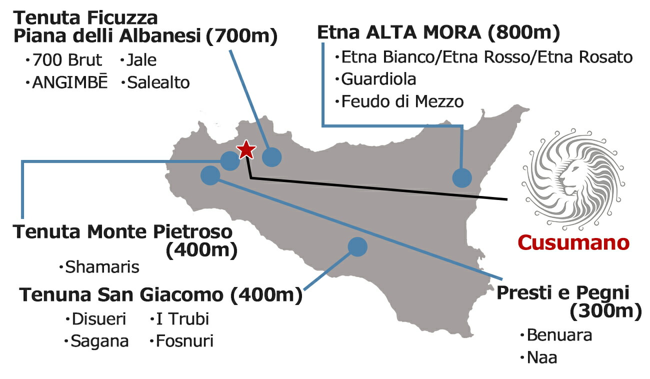 ディエゴ この2~3年のコロナ禍は畑仕事に注力しました。持続可能性に力を入れていて、その基準に従ってブドウ栽培を行っています。もちろん化学合成物質等は使いません。 そして、新しいワインを2種類リリースしました。本拠地から近いシチリア北部フィクッツァ農園で造る「サーレアルト」、南部のサンジャコモ農園で造る「フォスヌーリ」です。エトナやフィクッツァなどの農園に宿泊施設を建て、ワインツーリズムにも力を入れています。それぞれの産地で全く特徴が異なるので、そのエリアでしか味わえない体験をしていただきたいですね。 ![]() ・フィクッツァ農園 ・サンジャコモ農園 ・プレスティ エ ペンニ農園 ・モンテ ピエトローゾ農園 ・エトナ 「生産量を増やす前に畑を購入して先手を打て」 ――この20年の間でかなり畑を拡大されましたよね。 ディエゴ ワイナリーを創業した2000年時は、父から引き継いだ畑が40ヘクタールありました。その年にフィクッツァ農園、翌年にサンジャコモ農園を取得しました。その後、プレスティ エ ペンニ農園、モンテ ピエトローゾ農園、エトナと拡大していき、今は525ヘクタールあります。 ――10倍以上! すごいですね。 ディエゴ もともと自社畑で生産するという考えはありましたが、父からのアドバイスがあったんです。「畑は時間がかかる。生産量を増やす前に先に畑を購入して先手を打て」と。
