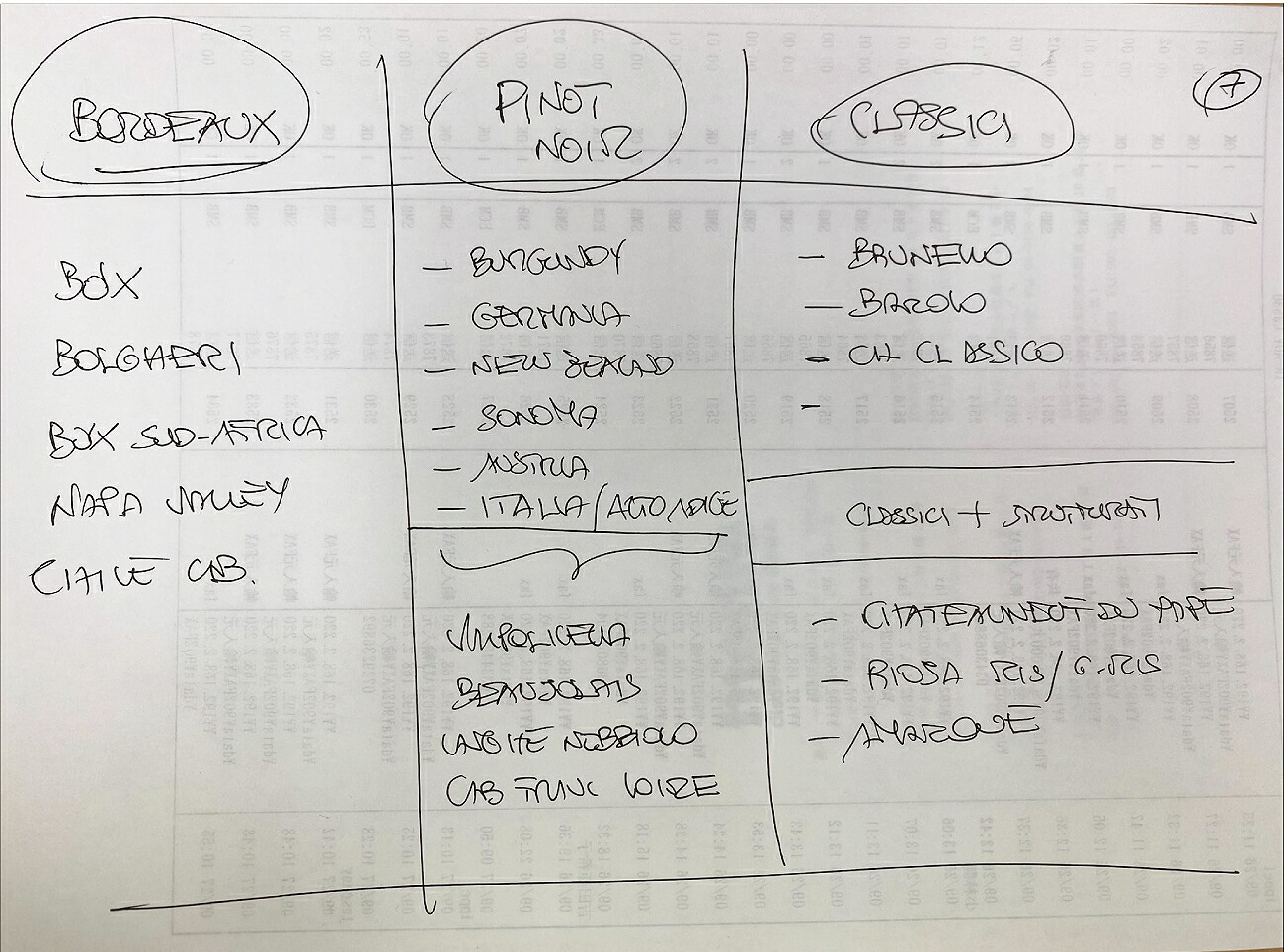 各テーマごとに順序立てて、内容の濃い話を理路整然と話されていて大変勉強になりました。実は、当記事では書ききれなかったお話はまだまだたくさんあり、非常に充実感に満ちたインタビューとなりました。様々な角度からワインを見ることができ、ベルターニについてより一層理解が深まったと思います。 インタビュー中、アンドレアさんはメモを書きながら解説してくださいました。その量なんとA4用紙30枚。その紙を後で見返すと、図解を用いたメモが多く、アンドレアさんの脳内を覗いてるようで大変興味深かったです。しかし、それは『マスターオブワイン』に到達するまでに積み上げてきた膨大な知識と経験に基づく理論の一部だと考えると、この貴重なメモ書きは『マスターオブワイン』アンドレアさんのほんの一部に過ぎません。もっともっとお話を聞きたかったです。 そして、偉大なアンドレアさんだからこそ生まれる発想のもと、ベルターニブランドは輝き続け進化を遂げているのだと思います。その結果、2023年度『ガンベロロッソ』で年間最優秀ワイナリー受賞に至ったのだと改めて感じました。 歴史、哲学、理論、想いが詰まった全てのベルターニワインを、ぜひご堪能ください。 |