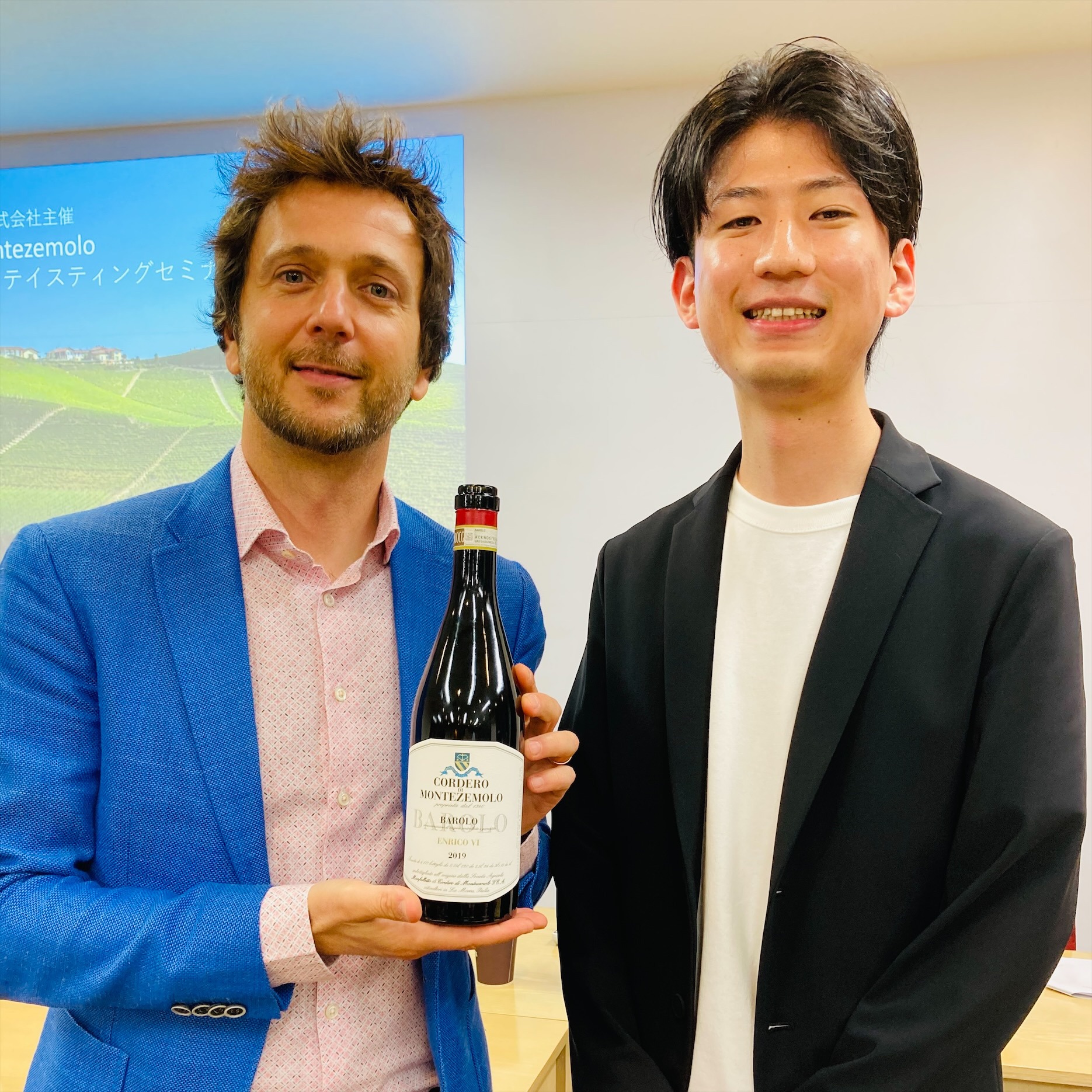 | 今回はバローロの名門、コルデロ ディ モンテツェモロの19代目当主アルベルト氏の登壇するワインセミナーに参加してきました!コルデロ ディ モンテツェモロはバローロに唯一残る貴族階級所有のワイナリーとして、680年にも渡り守ってきた土地でワインづくりに取り組んでいます。2種のクリュバローロに、フラッグシップワインである「BAROLO MONFALLETTO」の2019/2011/1999/1982年の垂直試飲を、アルベルト氏、通訳の宮嶋氏の解説でいただいてまいりました。 | ||||||||||