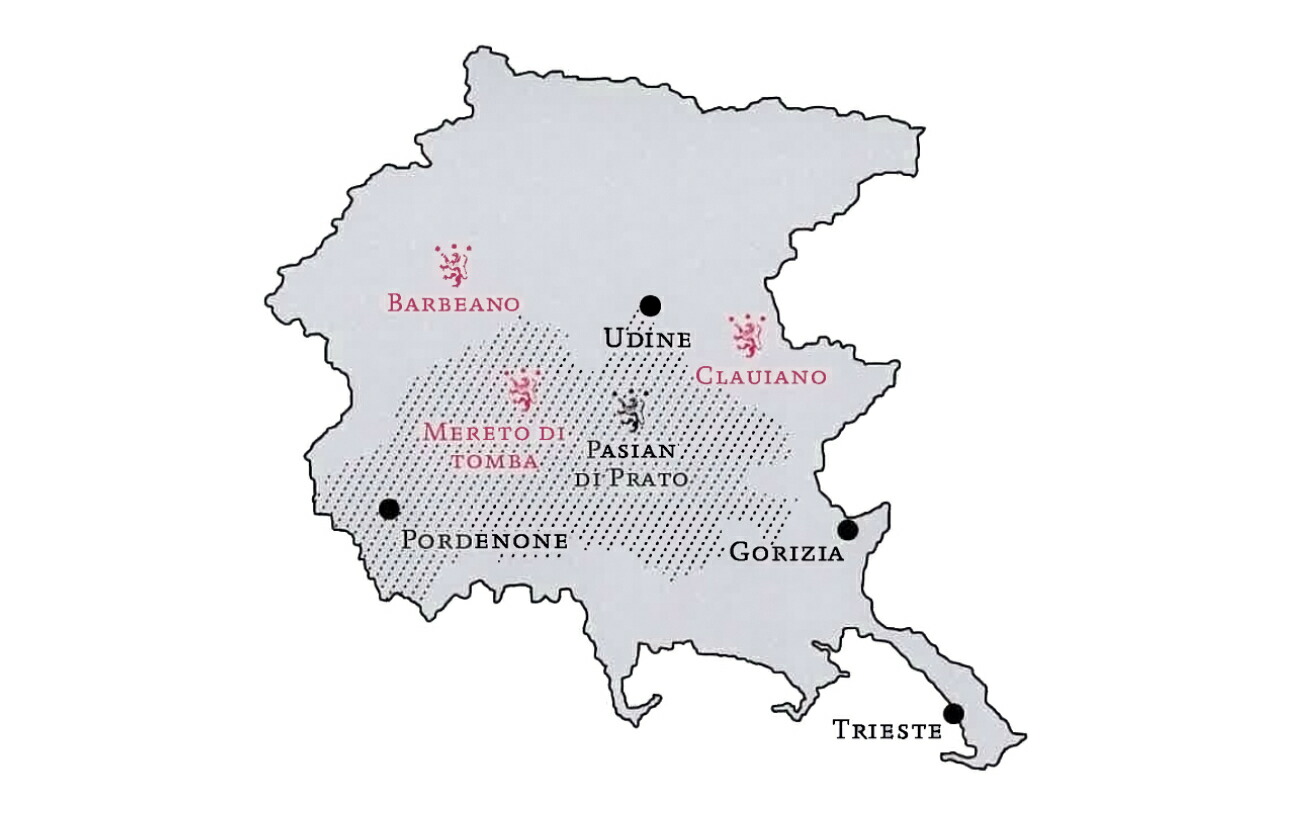 ワイナリーの場所はフリウリ中央部(ウディネ)の平野が広がるグラーヴェ地区にあります。主に砂質土壌で、特に白ワインに適した産地です。その中でも所有畑は3つのエリアに分けられていて、それぞれ白ワイン、赤ワイン、またはその両方に特化しています。