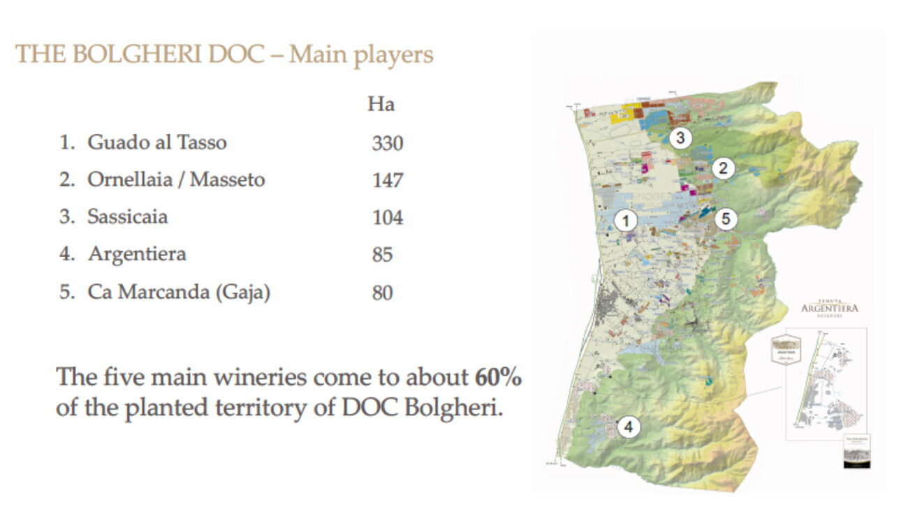 DOCボルゲリ屈指のワイナリー5社が全体の所有面積60%を占める
