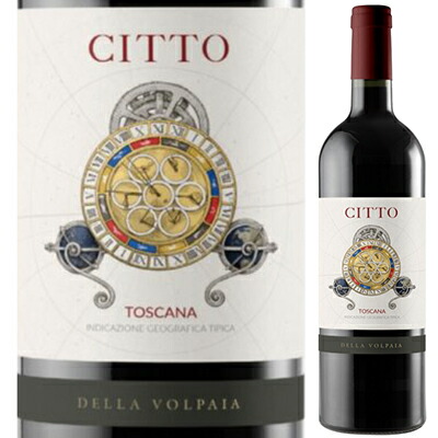 | ニコロ氏: 「主に買いブドウのサンジョヴェーゼとカベルネをブレンドで造る赤ワインです。チットは子どもを意味しており、ヴォルパイアの子どもという意味を持ちます。ブドウの比率は年によって変わりますし、メルローが入るヴィンテージもあります。フレッシュで持続性のある、スパイシーな味わいが特徴です。ラベルに描かれている時計は、かつてヴォルパイア家が所有していた、ロレンツォ・デ・メディチが作成した宇宙時計です。天体の動きを把握できるよう設計されています」 |