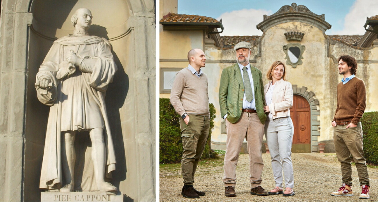 1494年には、祖先のピエール・カッポーニがフィレンツェの大使としてフランス王シャルル8世との交渉に臨み、軍事侵攻を未然に防いだと伝えられています。その功績を称え、ウフィツィ美術館の外壁には彼の像が設置されています。事業の中心が農業へと移行していったのは、メディチ家の支配が終わった後のことです。