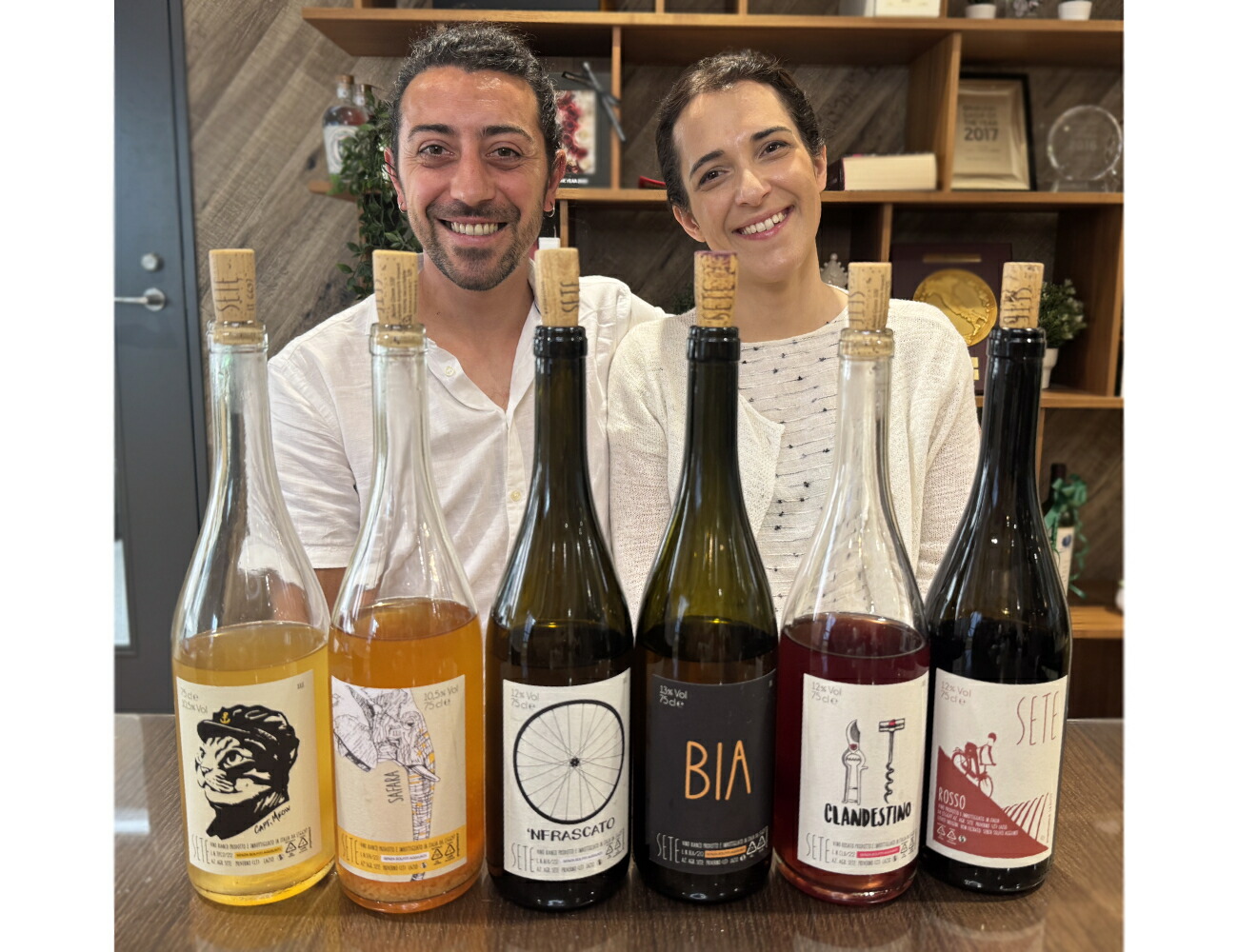 エミリアーノは、自然派のレ コステで働いていた経験を持っていました。もともとは同じ街で育った知人でしたが、ワインバーで再会し、自然派ワインに対する情熱を共有し合ったことをきっかけに、セーテのプロジェクトが始まりました。マルティーナは私の幼馴染で、セーテを始めた時はまだ大学生でした。現在は人生のパートナーでもあります。