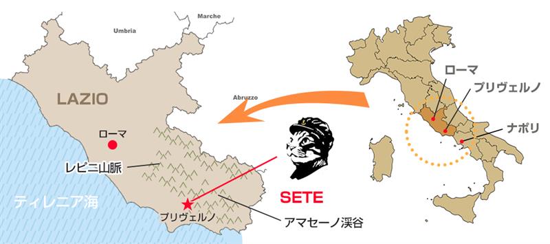 私たちセーテは、ラツィオ州プリヴェルノにあるワイナリーです。2013年に、私とマルティーナ、エミリアーノの3人で立ち上げました。創業のきっかけは、この地域の高樹齢の畑が次々に失われていったことです。祖父母の世代が守ってきた畑は世代交代がうまくいかず、多くが耕作放棄され、樹が抜かれていきました。その現実を目の当たりにしたため、アマセーノ渓谷周辺の古い畑を復活させることを最大の目標にしています。
