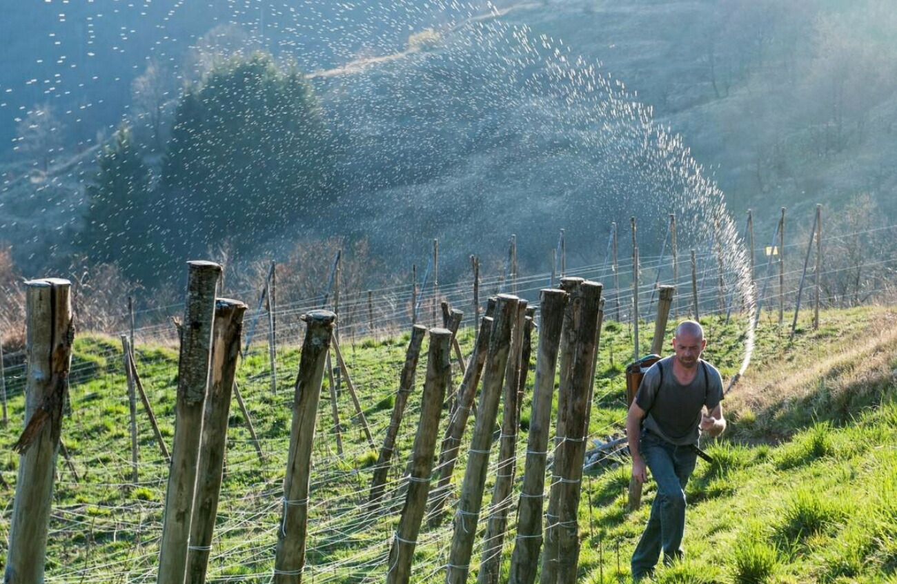 所有畑は5つの村、8つの小区画に点在し、合計3.5ヘクタールです。標高は300メートルから1050メートルまで幅があります。もともとあった畑に加えて、新たにトレッビアーノやシラー、シュナン ブラン、スキアーヴァといった品種も植樹していきました。