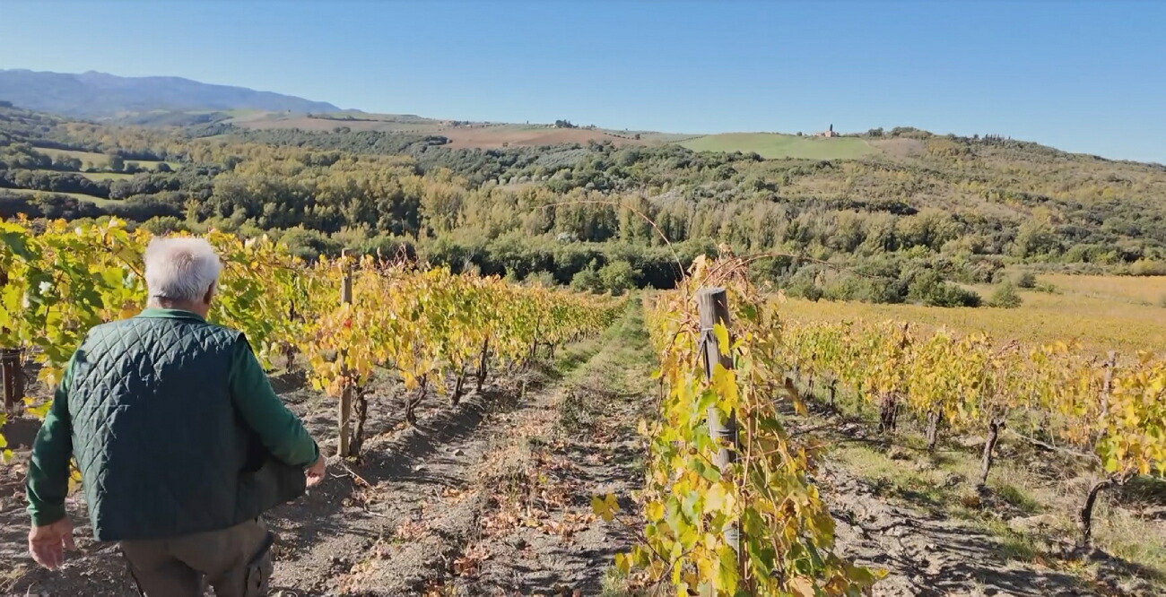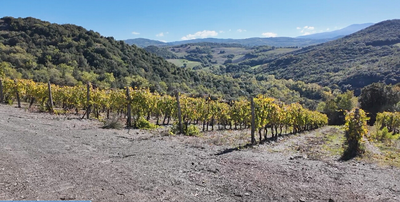 風が良くふいているでしょう?海はここからは見えないけれどもティレニア海からの海風も来るし、見た通り山からの風も来る。これは雨が多い年に特にメリットがあって、例えば雨の多かった2018年はこの風のおかげで健康な状態のままブドウを収穫できました。