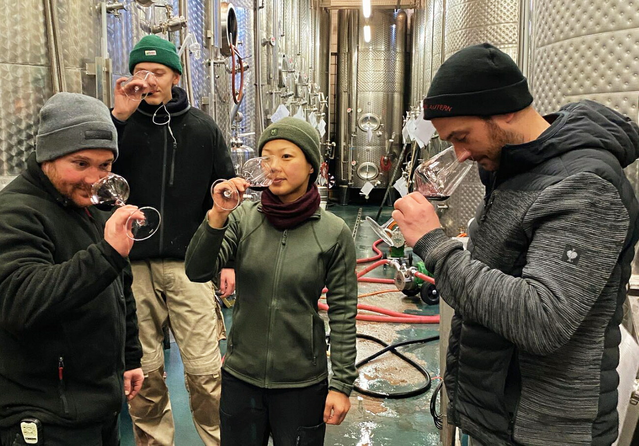 コッホ社は常に「そのワインを飲むお客様」を想像したワイン造りを軸としています。「この状態では瓶詰めできない」と判断すれば、サイコロを振り直すように、何度でもやり直します。だから、何度も試飲しますし、試飲方法も評価の視点も徹底して客観的です。