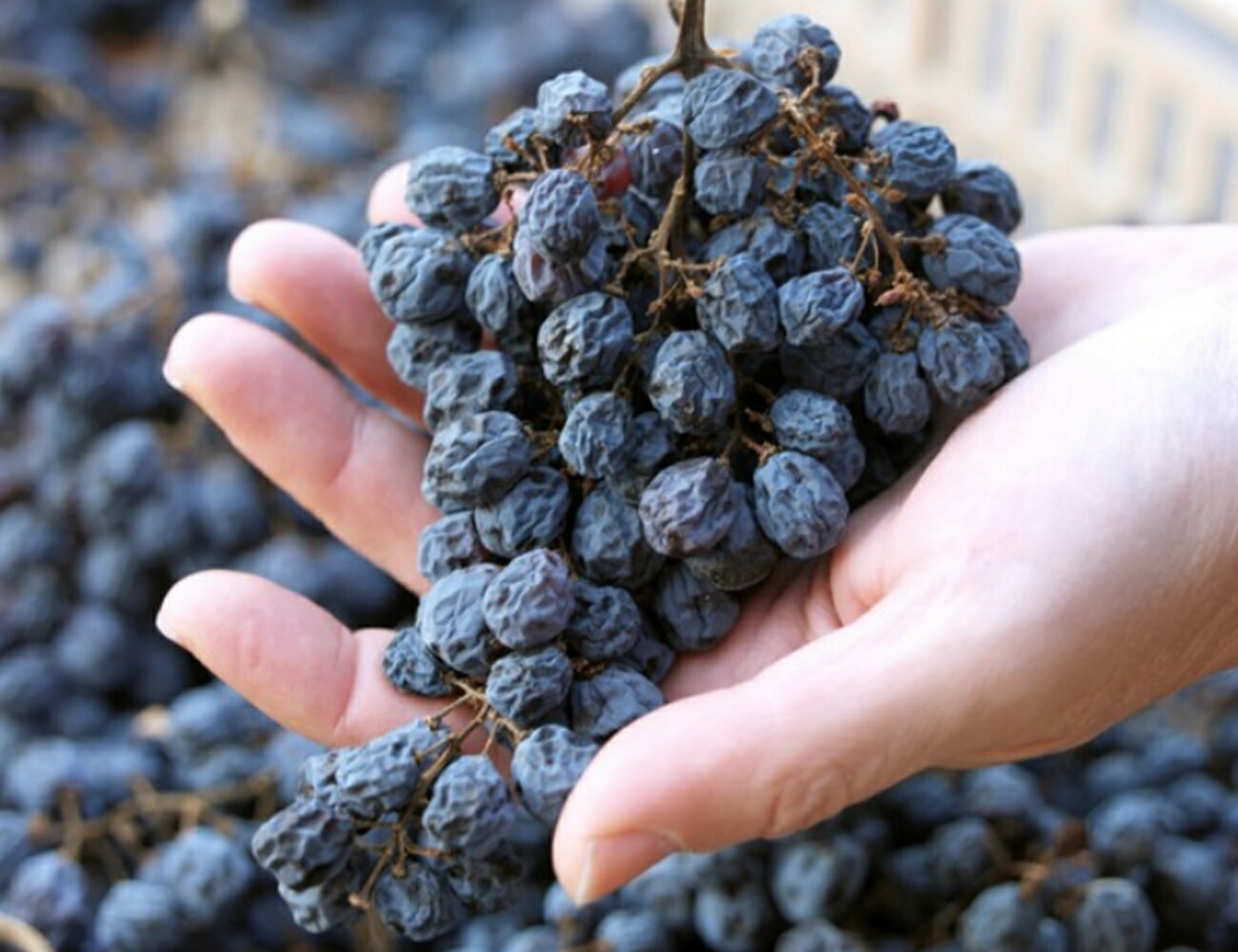 アパッシメントが完了したブドウ。カビなどはなく、健全な状態を保っている