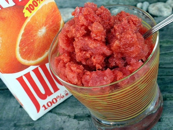 オランフリーゼル社のタロッコオレンジ(ブラッドオレンジ)は100%フレッシュオレンジを搾り、そのまま冷凍したもの。もちろん濃縮還元ではありません。ブラッドオレンジはエトナ山麓の土壌条件とカターニャ均衡の気候風土がもたらす赤さが特徴です。