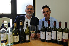 2017年7月、セッラ&モスカ社のエノロゴであるジョヴァンニ ピンナ氏、輸出部長のルカマウリーニ氏と試飲しました。「このワインは私たちのベースとなる白ワインです。カンティーナを構えるアルゲーロ地区のヴェルメンティーノを使用しています。海から吹く風がワインに心地よいミネラル感を与えています」と話してくれました。