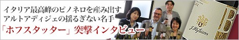 イタリア北東部、オーストリアとの国境、トレンティーノアルトアディジェ州のトラミンという町にジョセフ ホフスタッターが1907年に創業した歴史あるワイナリーです。現在は彼の子孫であるマーティン フォラドーリ ホフスタッターが4代目のオーナーとしてワイナリーを継いでいます。 ここ南チロル地方の家族経営のワイナリーとして最大にして最も古い歴史を持っていて、アディジェ川を挟んだ東西両岸4ヶ所に、この地方で最大級の広さを誇る計50haの自社畑を所有しています。協同組合が多いこの地方において、1つのワイナリーがこれだけ多くの栽培面積を持つ事は稀で、100年以上続く歴史のあるホフスタッターならではと言えます。
