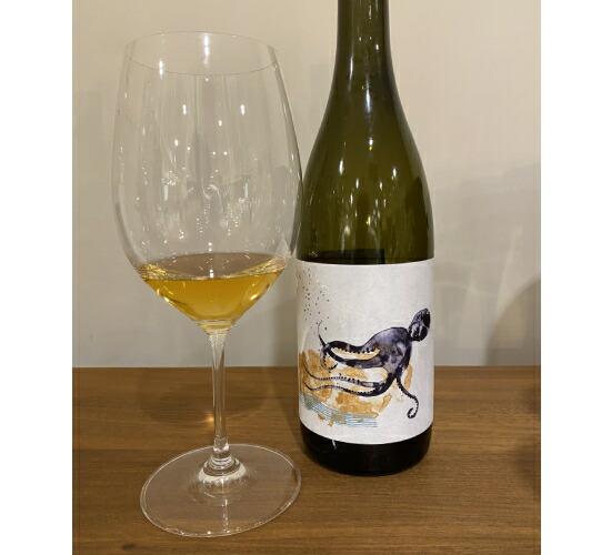 ラベルデザインは友人のデザイナーが描いたものです。アンソニカは海との関係性が高いので、ミステリアスで知性的な海の生き物であるタコをラベルに採用しました。魚料理はもちろん、脂の多いチーズとの相性が良いです。ワインの酸味とミネラル感が、チーズの油分を洗い流す効果があります」