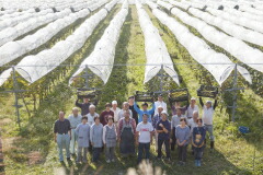 日本におけるぶどう栽培は、欧州や新大陸の産地に比べて雨(特に梅雨)や気温(夏の猛暑)の影響がその年の収穫量を左右する状況にあります。そのため、ドメーヌ テッタではそれらの気候的な影響を軽減して生育環境を改善するために、雨に対しては被覆ビニールによる栽培を行っております。