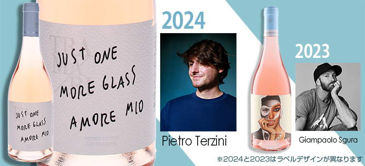 2024年ヴィンテージのトラマーリのラベルは、北イタリア出身のアーティストでエルメスやティファニーともコラボするピエトロ テルツィーニ氏によるもの。ミニマルで直線的なデザインを持つトラマーリ ロゼのラベルにインスピレーションを得て、「愛」をテーマにした短いメッセージを創作しました。