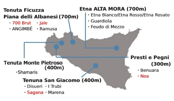 世界的評価誌でも評価が高く、シチリアの中でもエレガンスを感じられるシャルドネ「ヤレ」。標高700mの西部「フィクッツァ」で造られる、膨らみのある香りが魅力のワインです。同じく標高700mのフィクッツァ農園と強烈な太陽の組み合わせによって生まれた爽やかなメトドクラシコ「ブリュット 700」。シチリアとは思えないような涼し気な風味が特徴です。