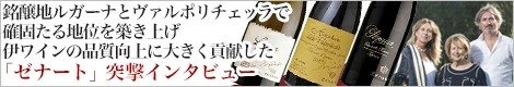 ゼナートは、1960年の創業時から地元ヴェネト州ルガーナで一貫して高品質を追求し、土着品種トレッビアーノ ディ ルガーナでイタリアワインの品質向上に大きく貢献した老舗ワイナリーです。銘醸地ヴァルポリチェッラでも生産を開始すると、ゼナートが貫き通してきた製法がリパッソの生産規定に採用されるなど、リパッソワインの復興にも全力を注ぎます。