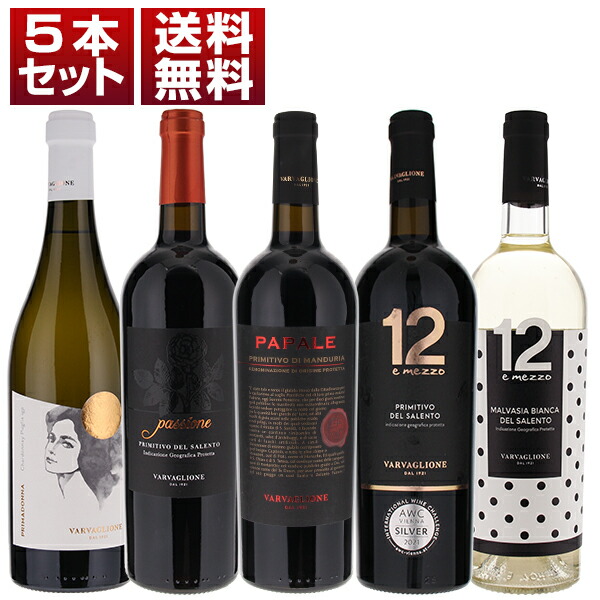 プーリア最大級の家族経営ワイナリー ヴァルヴァリオーネ コストパフォーマンス 赤白5本セット (750ml×5)