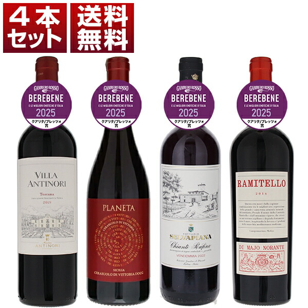 ベーレベーネ 2025 クアリタ/プレッツォ賞 ガンベロロッソ コストパフォーマンス お値打ちワイン 赤4本セット ver.1 (750ml×4)