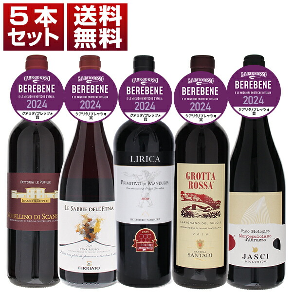 ベーレベーネ 2024 クアリタ/プレッツォ賞 ガンベロロッソ コストパフォーマンス お値打ちワイン 赤5本セット ver.3 (750ml×5)
