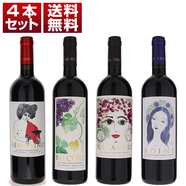 ビオ認証取得で進化するエレガンスと深み!歌劇「愛の妙薬」にちなんだ芸術的ラベル「イジュスティエザンツァ」4本セット (750ml×4)