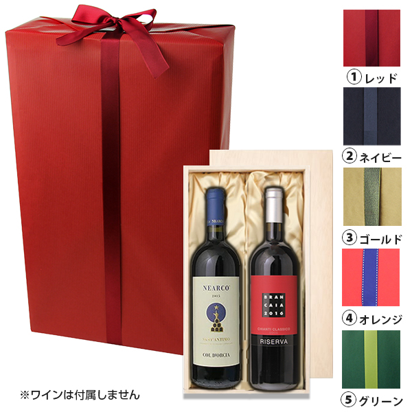 [ラッピング] 贈答用木箱布張り 2本用 キャラメル包装+リボン掛け (包装紙の色は連絡事項欄でご指示ください)[送料無料対象外商品]