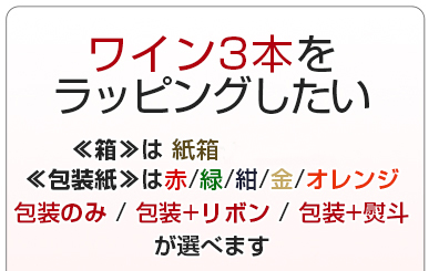 [ラッピング] ギフト3本箱 キャラメル包装+リボン掛け (包装紙の色は連絡事項欄でご指示ください)