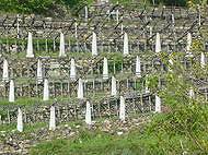 ヴァッレ ダオスタとの州境に位置するカレーマは非常に冷涼な地域。ここでの葡萄栽培を可能にしているのが、"トゥピン"と呼ばれる石垣で組まれた段々畑です。日中に太陽によって温められた石垣と石柱が、夜間に熱を放射することでブドウが死滅せずにすみます。非常に過酷な条件ですが、この地ならではの透明感のある滋味深い味わいのワインが生まれます。