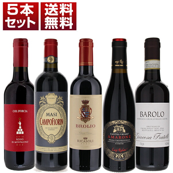 イタリア有名銘柄「アマローネ」「バローロ」「バルバレスコ」「ロッソ ディ モンタルチーノ」「キャンティ」を楽しむ5本セット (750ml×5)