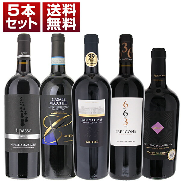 アパッシメント製法による複雑な風味! 濃厚リッチな果実感 イタリア 赤5本セット (750ml×5)