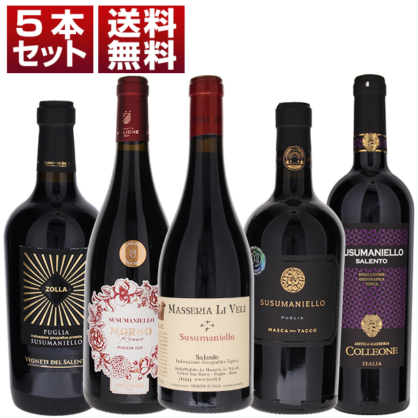 絶滅の危機に瀕して復活を遂げたプーリア古代品種「ススマニエッロ」を5つの生産者で堪能する飲み比べ5本セット (750ml×5)