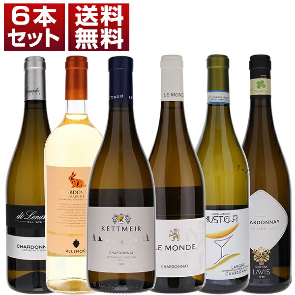 お手頃 シャルドネ飲み比べ!心地よい果実味とフレッシュ感が最高に美味しい イタリア 樽なし シャルドネ 6本セット ver.4 (750ml×6)