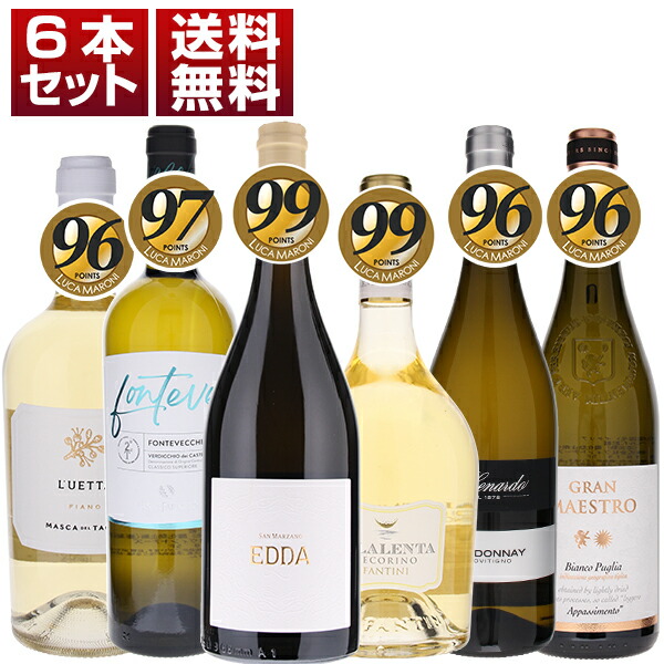 全てのワインがルカマローニ96点超! 圧倒的なコストパフォーマンスで楽しむ イタリア 白6本セット ver.3 (750ml×6)